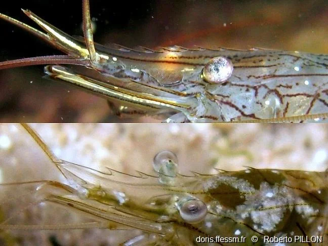 Photographies du rostre de deux espèces de crevettes Palaemonidea : P. serratus (photo du haut) et P. elegans (photo du bas). Photo credit: Roberto Pillon, doris.ffessm.fr.